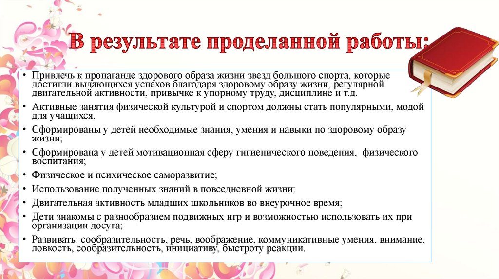 двигательной активности, привычке к упорному труду, дисциплине и т.д.