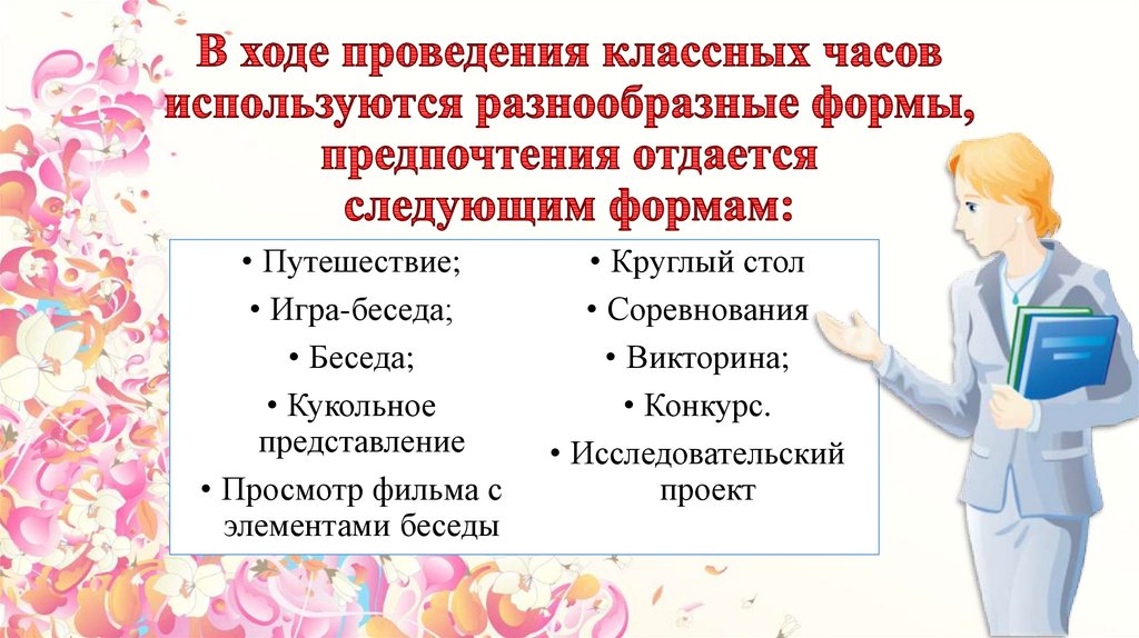 соответствие формы тематике и цели классного часа;