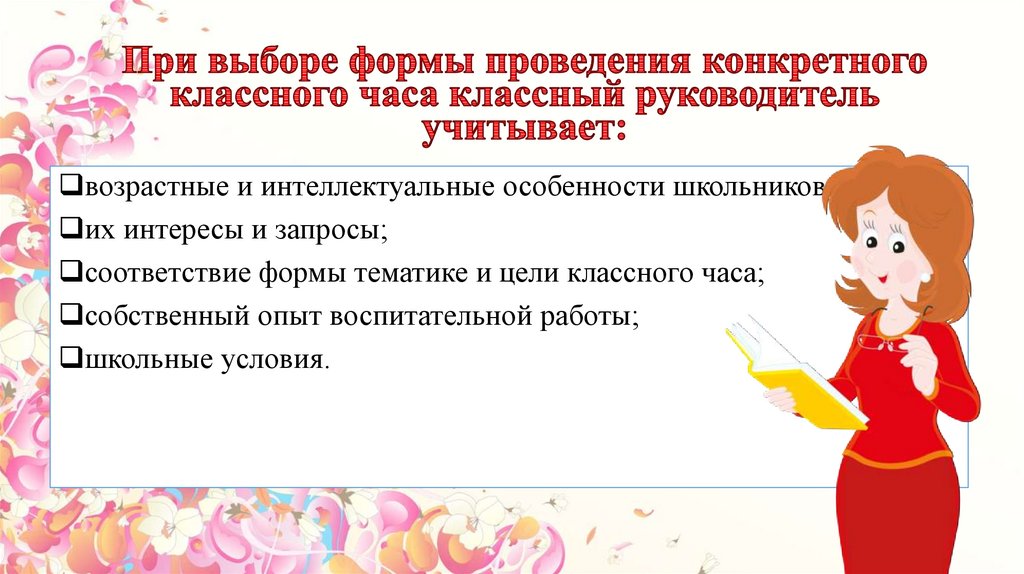 возрастные и интеллектуальные особенности школьников;их интересы и запросы;