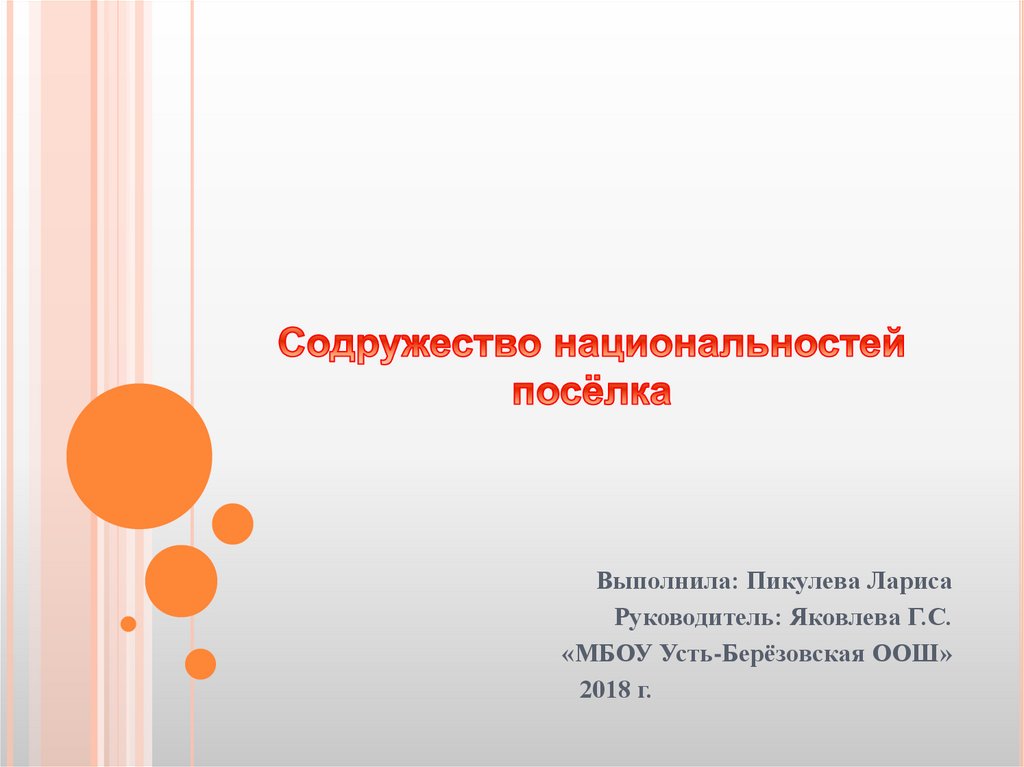 Объект исследования: жители посёлка УстьБерёзовкаПредмет исследования: национальности посёлка
