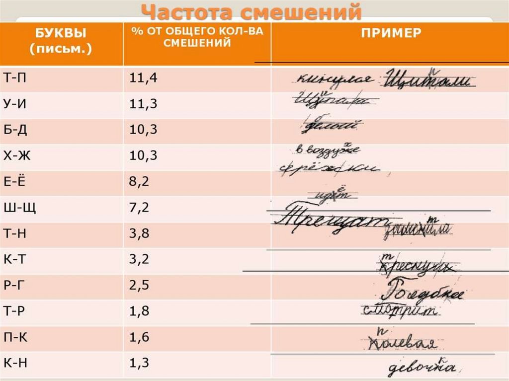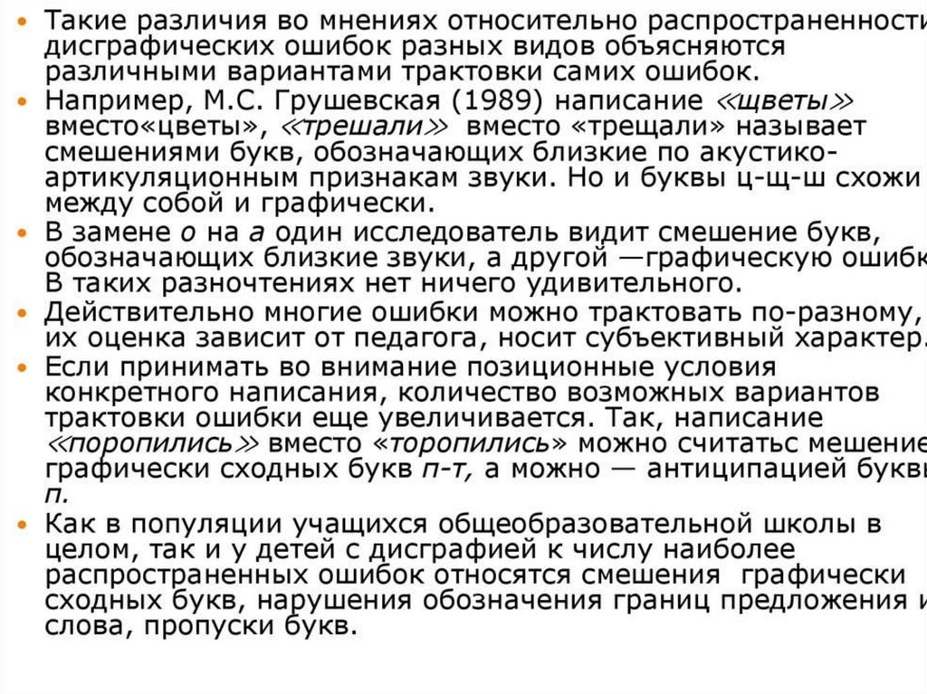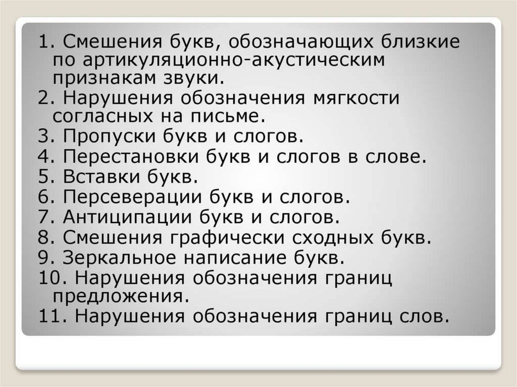 Симптоматика нарушений письма (дисграфии и дисорфографии)