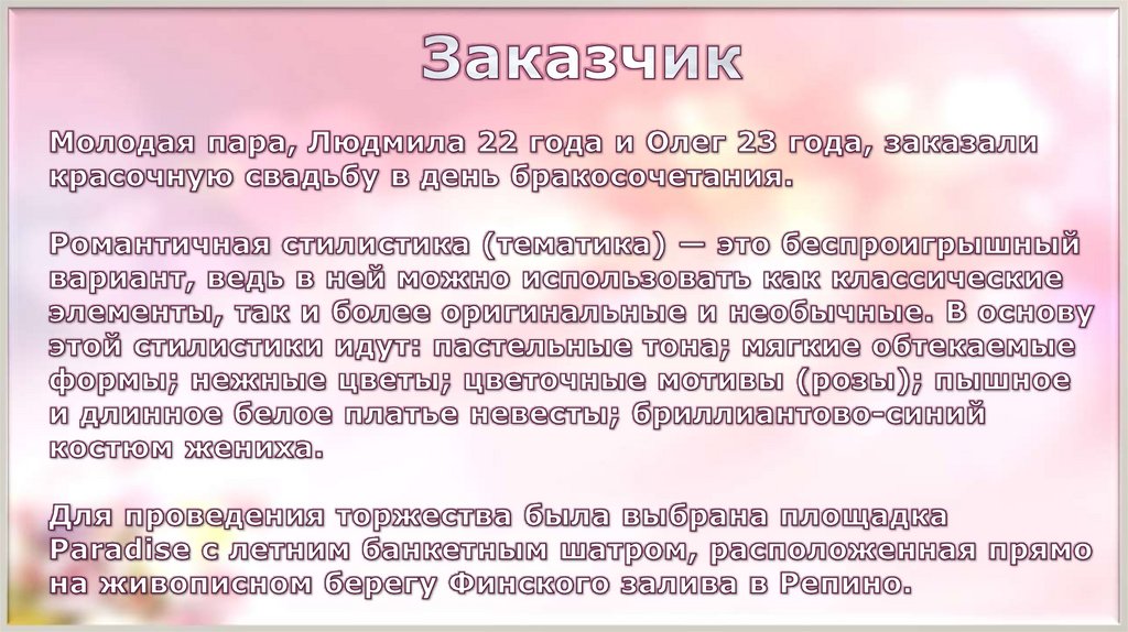 СВАДЬБА В РОМАНТИЧЕСКОМ ЭЛЕГАНТНОМ СТИЛЕ