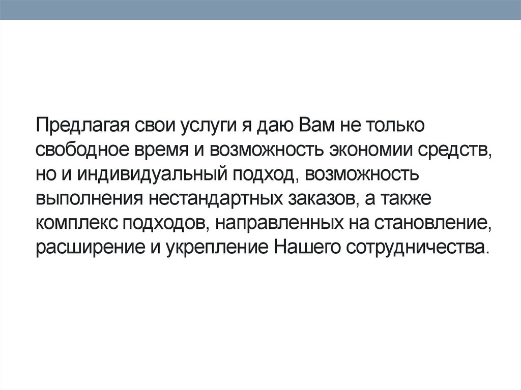 Предлагая свои услуги я даю Вам не толькосвободное время и возможность экономии средств,