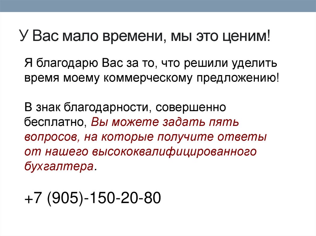 У Вас мало времени, мы это ценим!Я благодарю Вас за то, что решили уделить