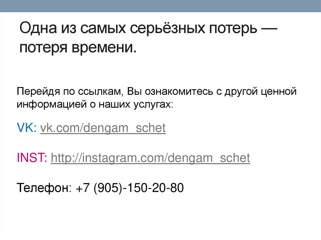 Одна из самых серьёзных потерь —потеря времени.