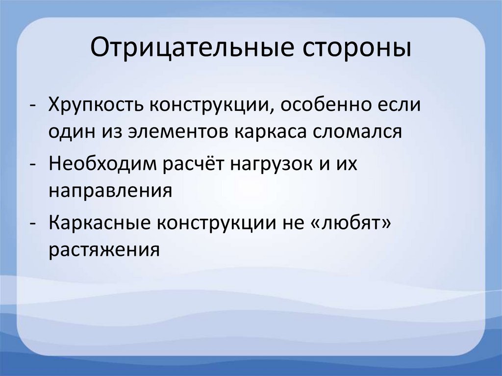 Отрицательные стороны- Хрупкость конструкции, особенно если