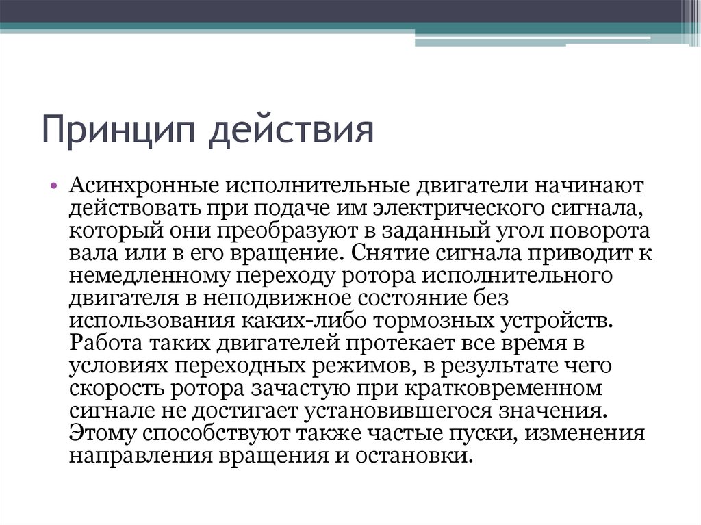 Принцип действия• Асинхронные исполнительные двигатели начинают