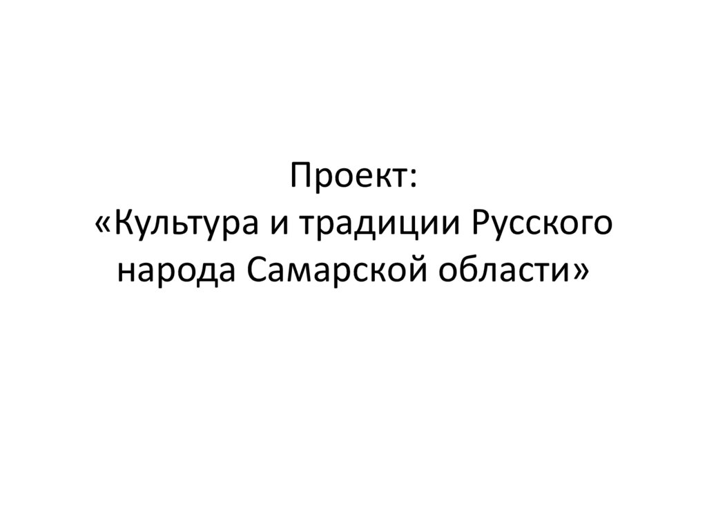 Культура и традиции русского народа Самарской области