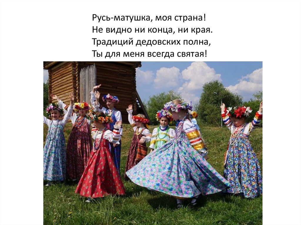 Русь-матушка, моя страна!Не видно ни конца, ни края.