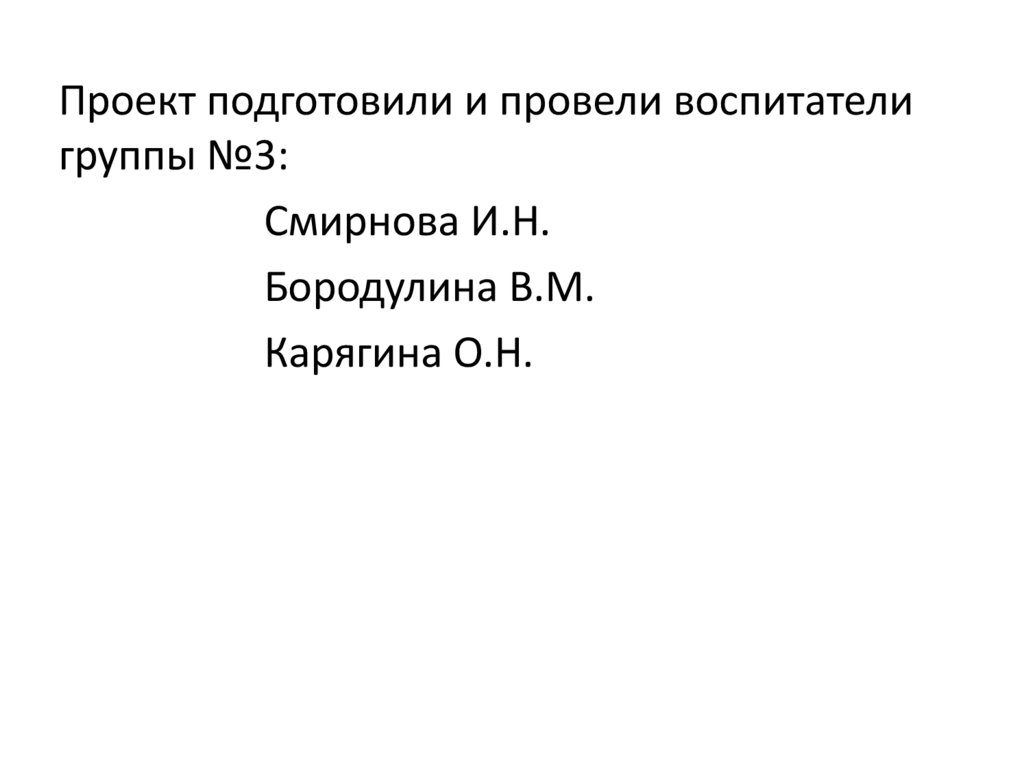 Проект подготовили и провели воспитателигруппы №3:
