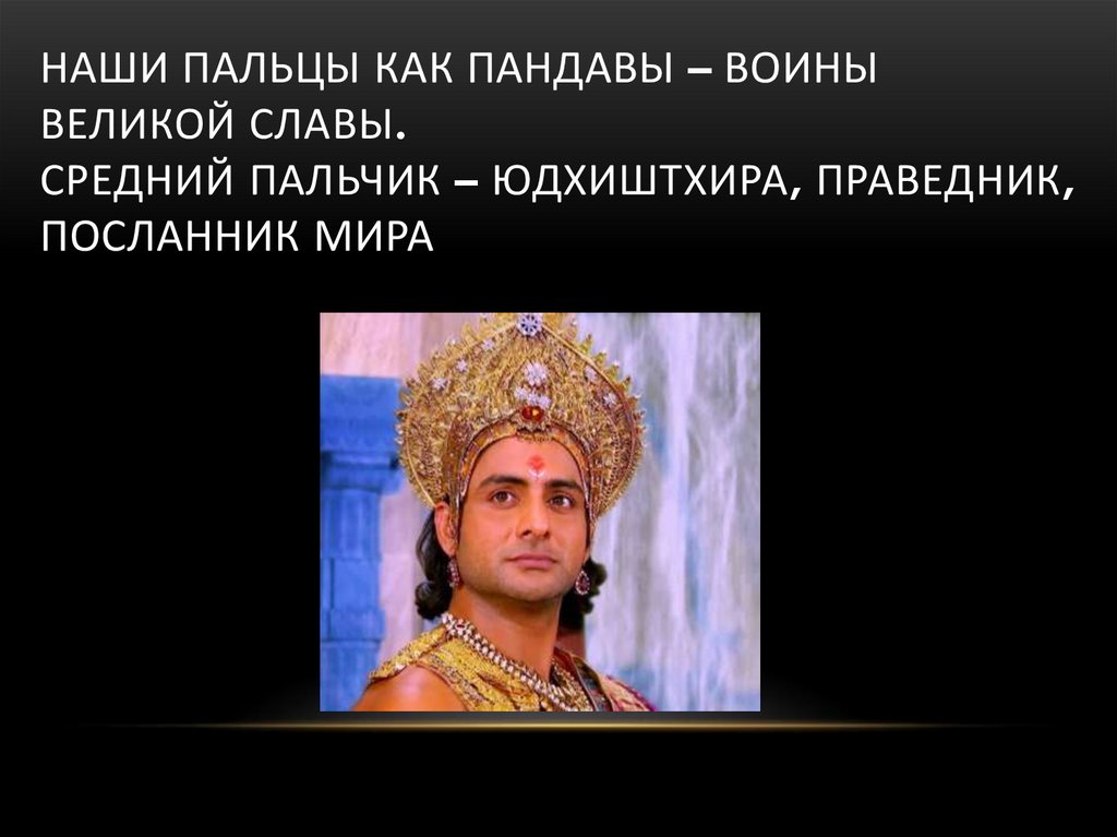 СРЕДНИЙ ПАЛЬЧИК – ЮДХИШТХИРА, ПРАВЕДНИК,