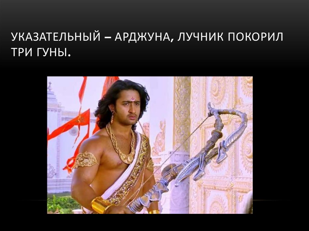 УКАЗАТЕЛЬНЫЙ – АРДЖУНА, ЛУЧНИК ПОКОРИЛТРИ ГУНЫ.