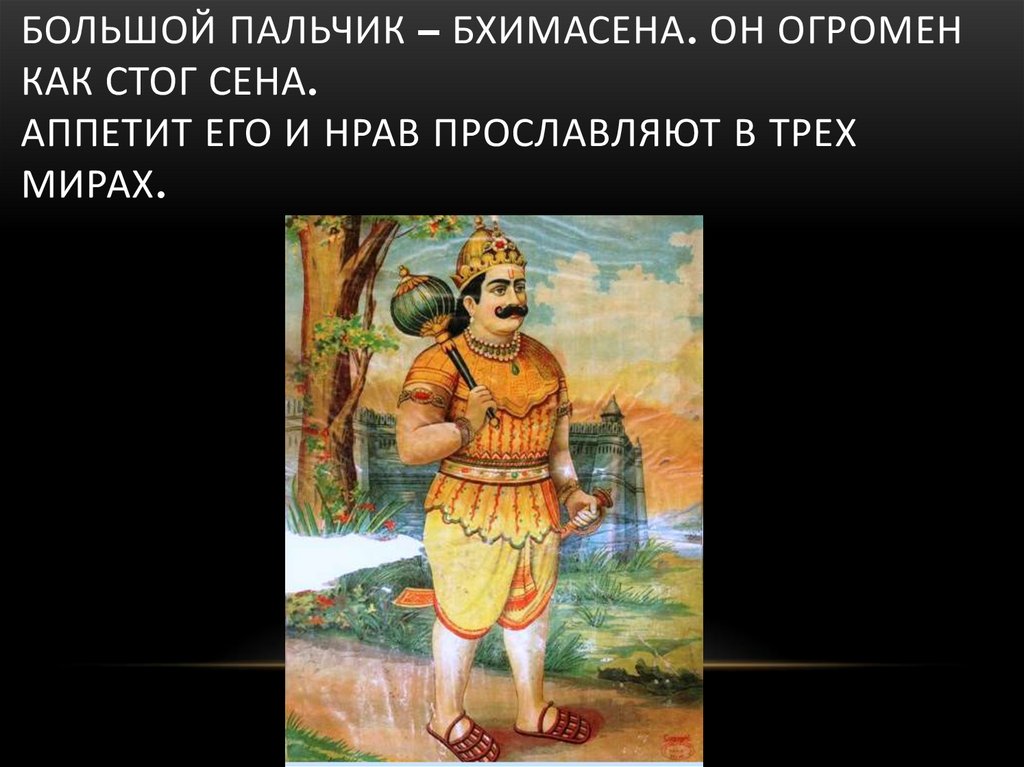 БОЛЬШОЙ ПАЛЬЧИК – БХИМАСЕНА. ОН ОГРОМЕНКАК СТОГ СЕНА.
