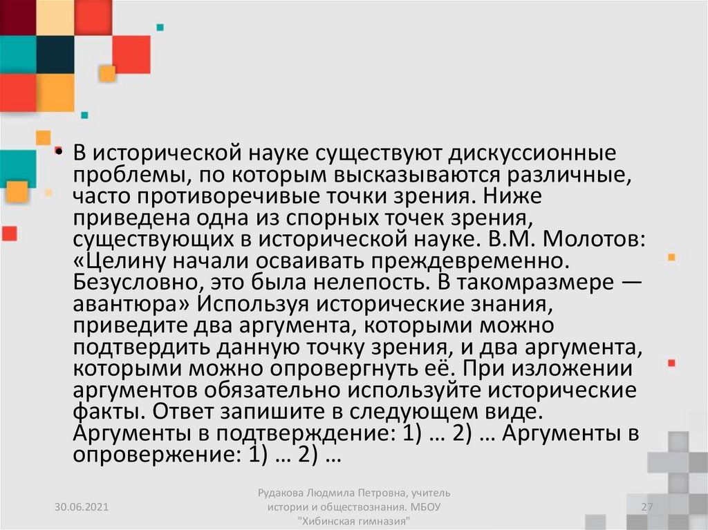 • В исторической науке существуют дискуссионныепроблемы, по которым высказываются различные,