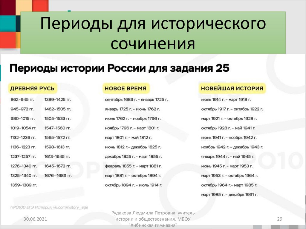 Периоды для историческогосочинения
