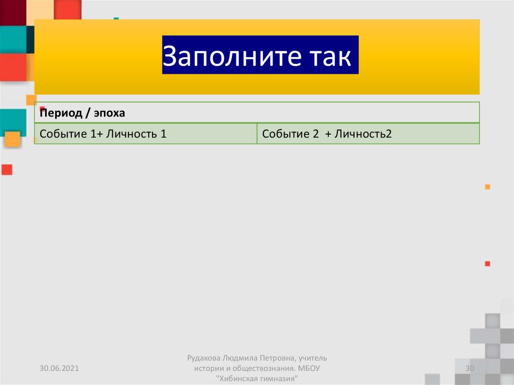Заполните такПериод / эпоха