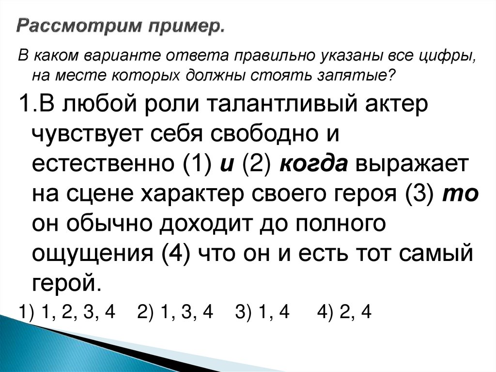 В каком варианте ответа правильно указаны всецифры, на месте которых должны стоять запятые?
