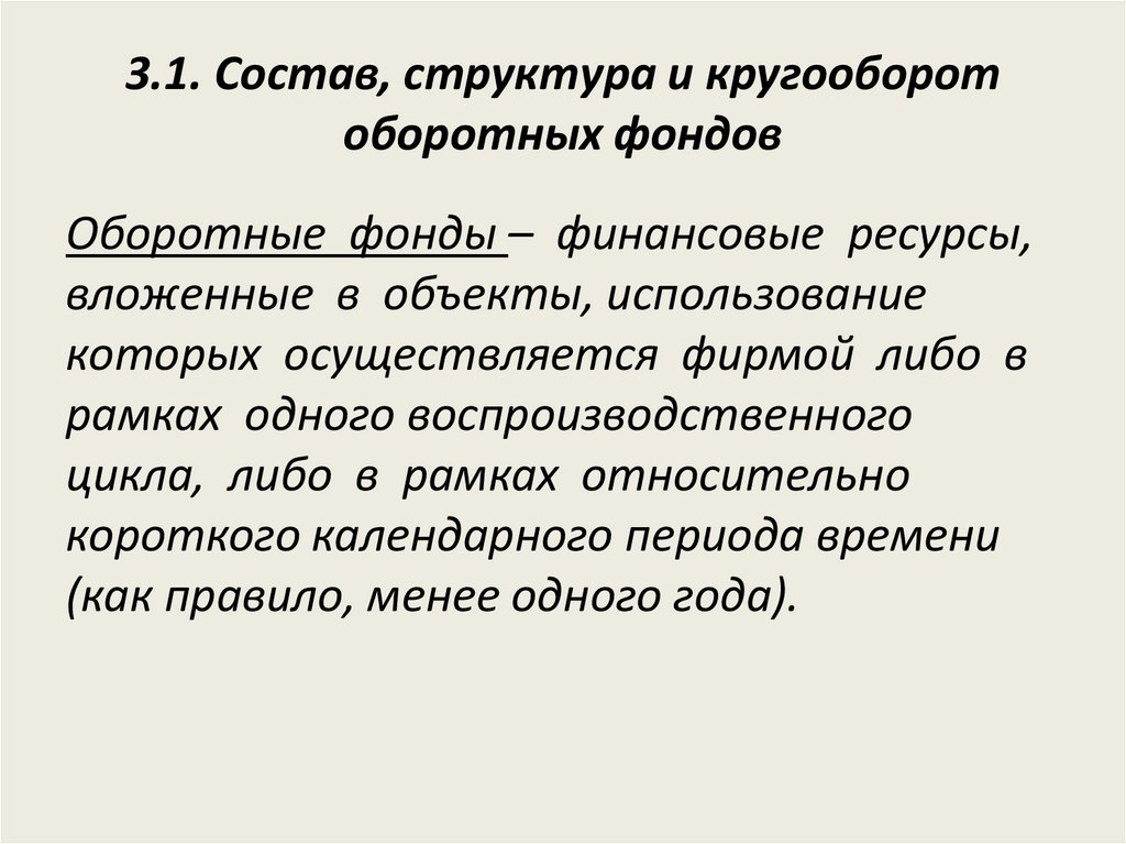 3.1. Состав, структура и кругооборотоборотных фондов