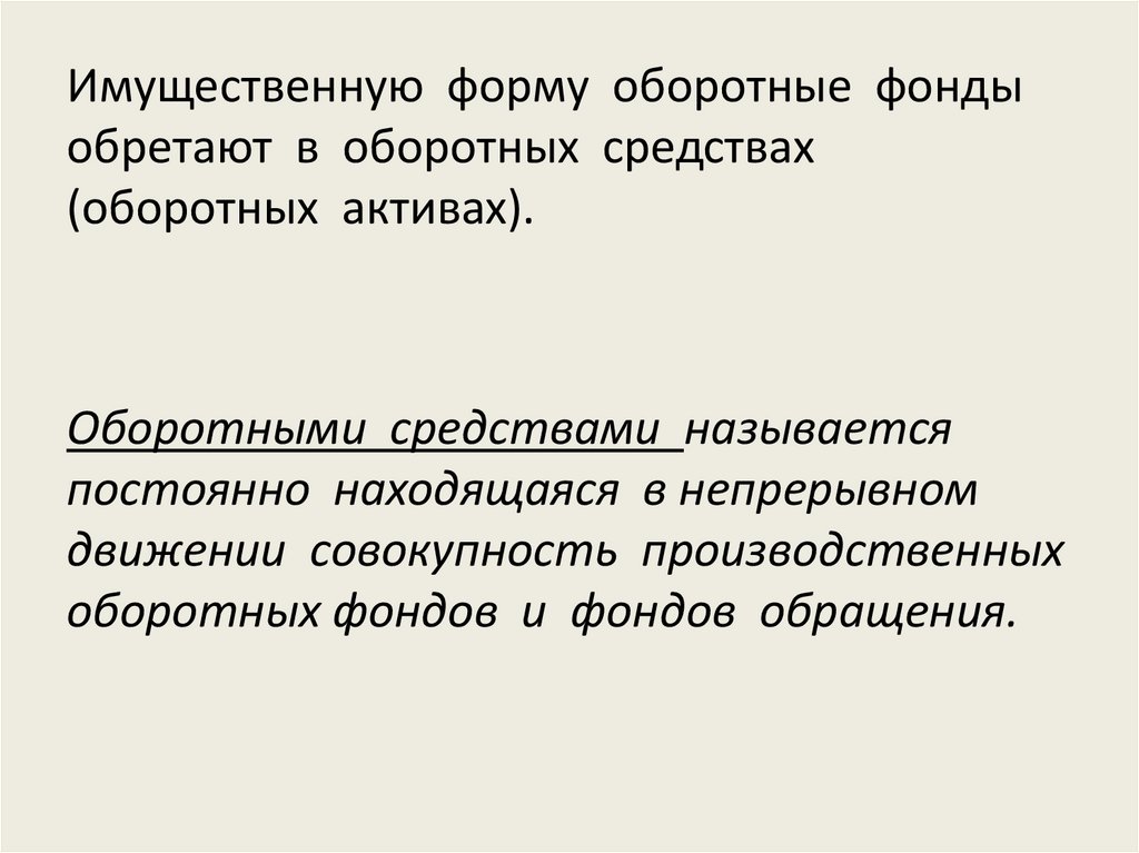 Имущественную форму оборотные фондыобретают в оборотных средствах