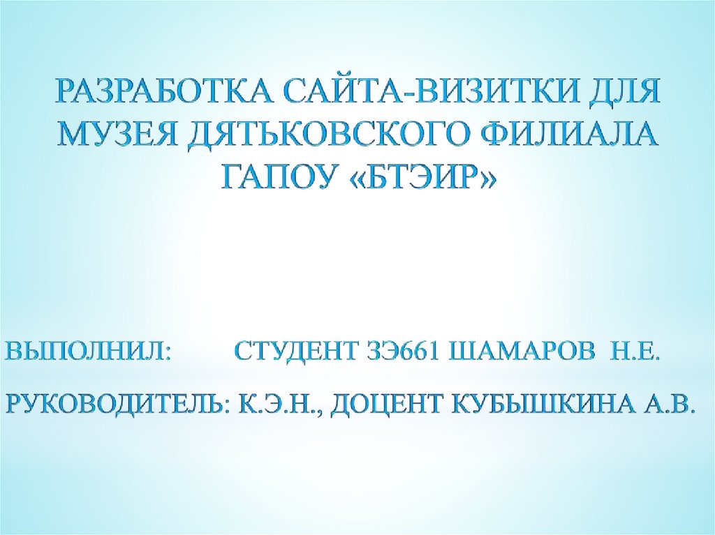 Разработка сайта-визитки для музея Дятьковского филиала ГАПОУ "БТЭИР"