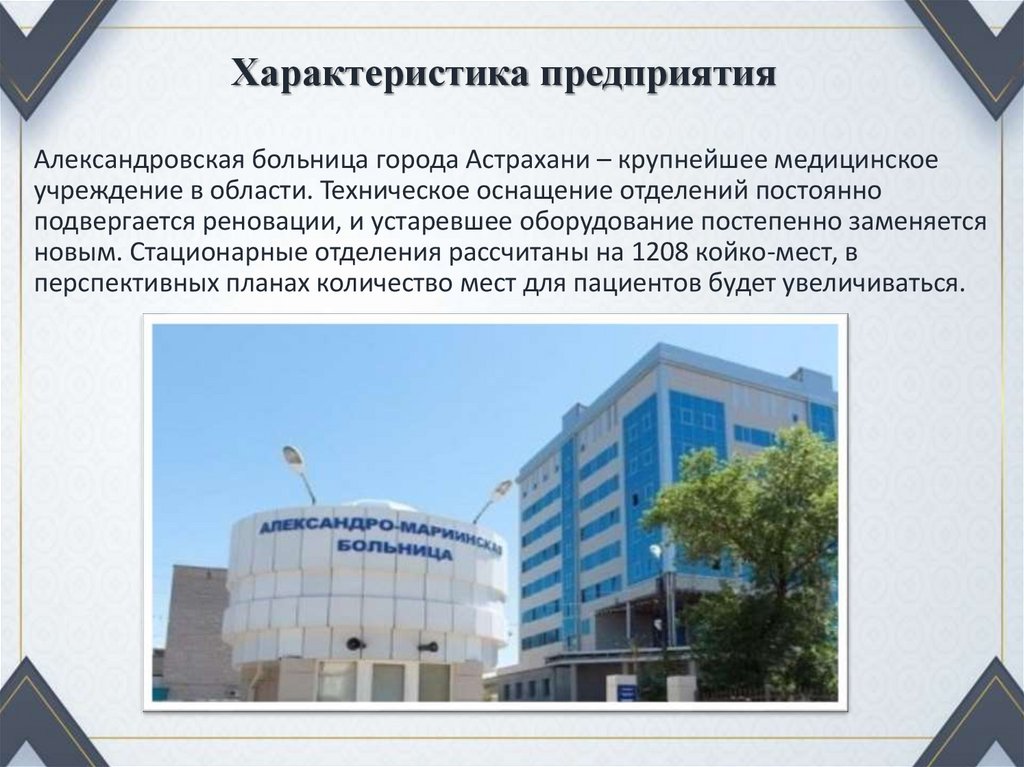 Характеристика предприятияАлександровская больница города Астрахани – крупнейшее медицинское