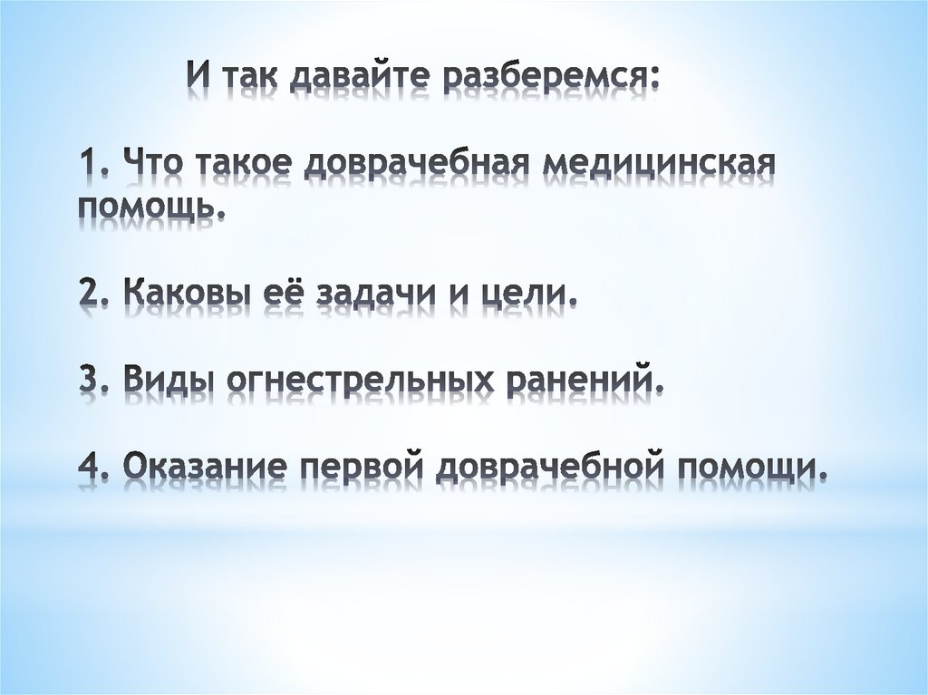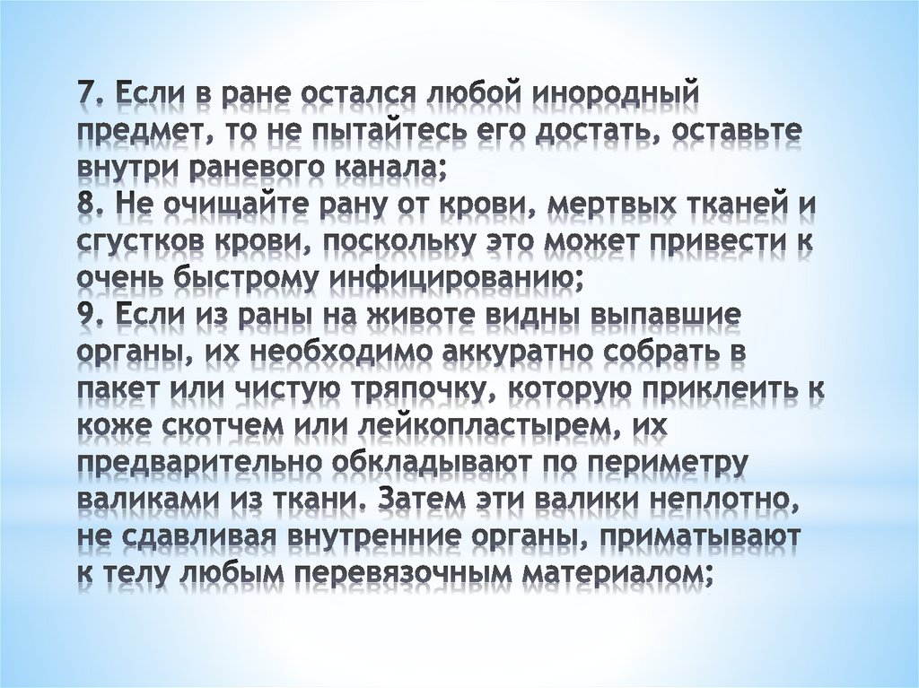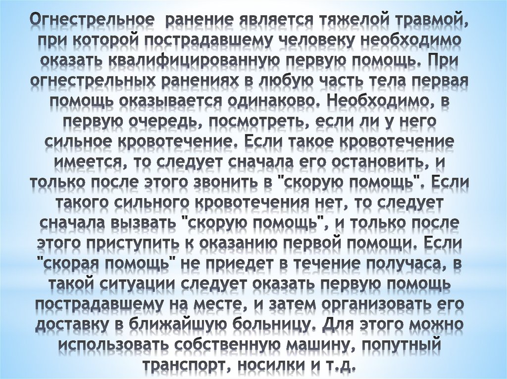 Оказание первой доврачебной помощи при осколочных и пулевых ранениях