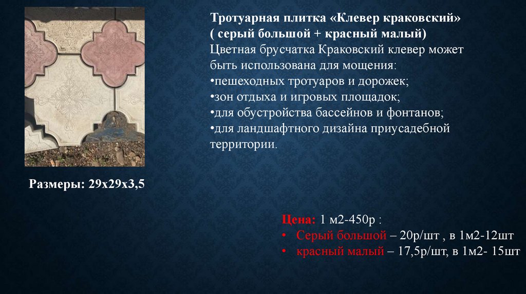 Тротуарная плитка «Клевер краковский»( серый большой + красный малый)