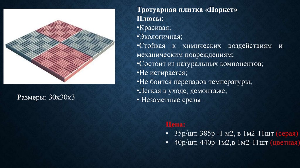 Размеры: 30х30х3Тротуарная плитка «Паркет»