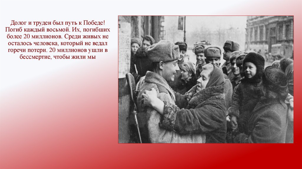 Долог и труден был путь к Победе!Погиб каждый восьмой. Их, погибших