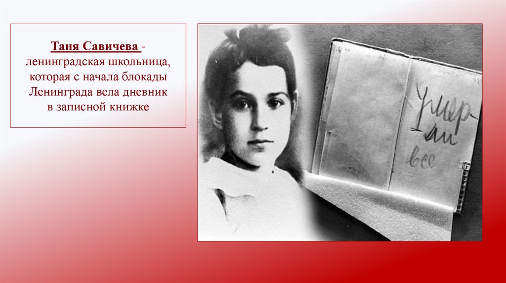 Таня Савичева ленинградская школьница,которая с начала блокады