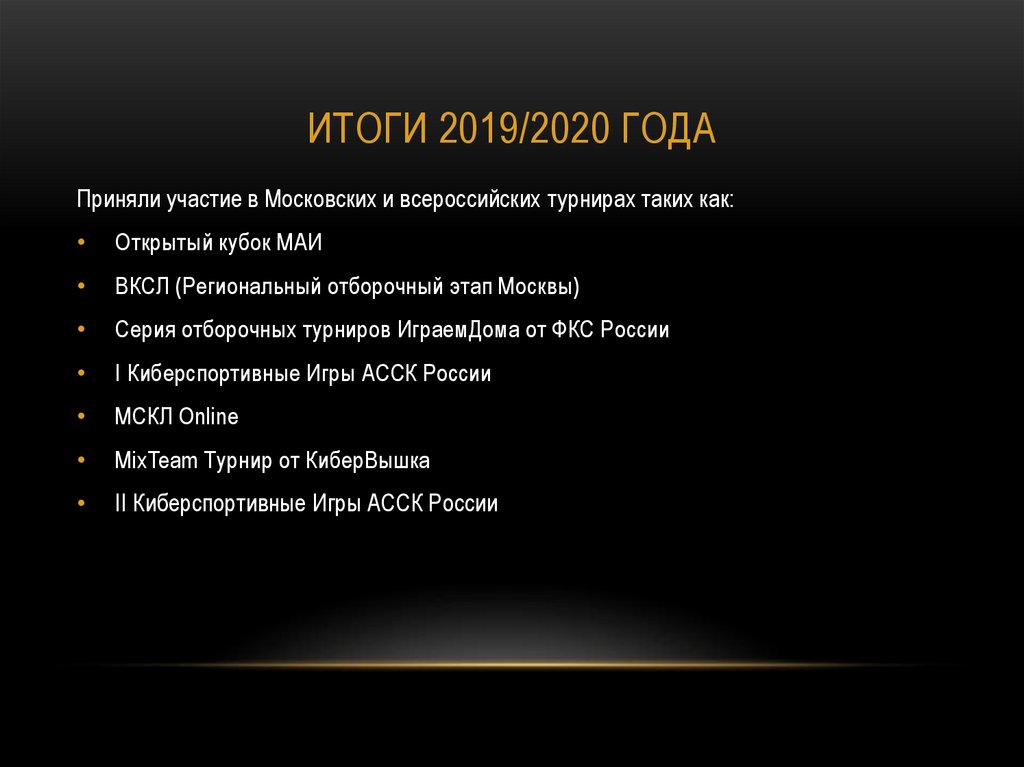 ИТОГИ 2019/2020 ГОДАПриняли участие в Московских и всероссийских турнирах таких как: