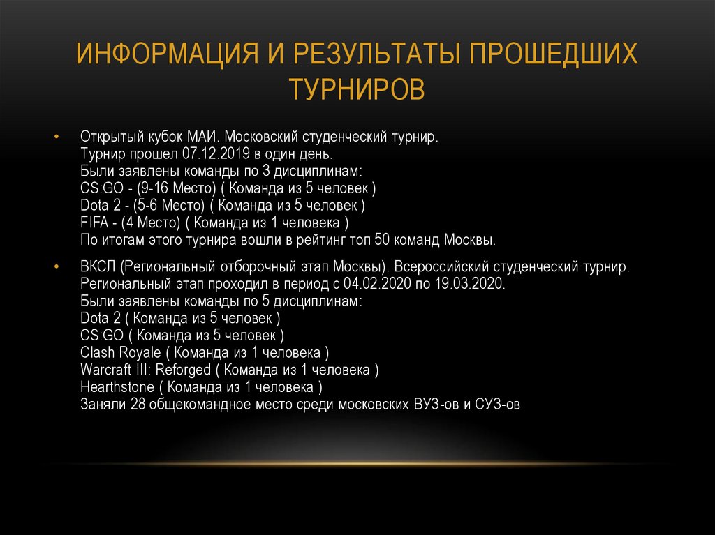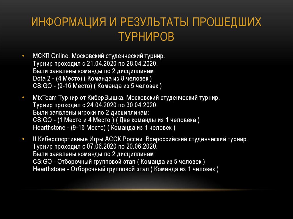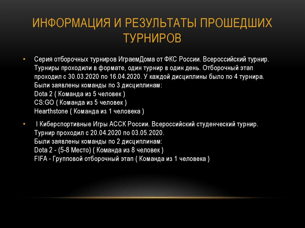 ИНФОРМАЦИЯ И РЕЗУЛЬТАТЫ ПРОШЕДШИХТУРНИРОВ