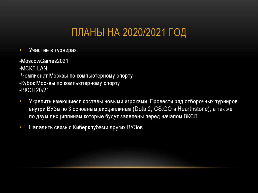 ПЛАНЫ НА 2020/2021 ГОДУчастие в турнирах: