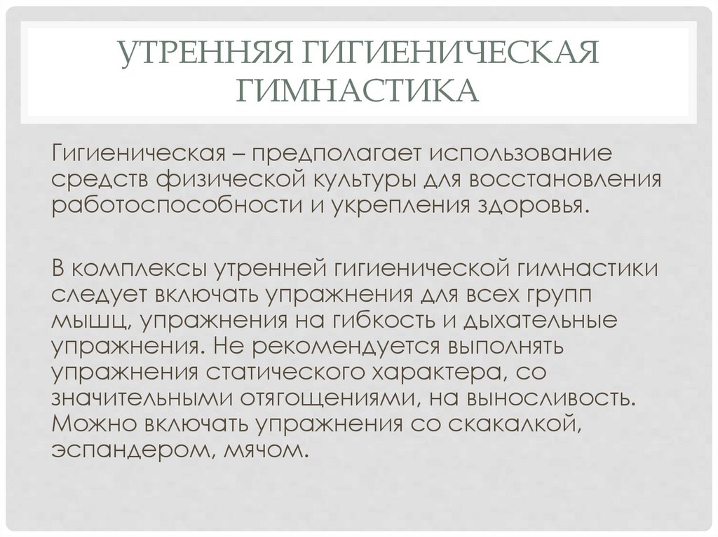 УТРЕННЯЯ ГИГИЕНИЧЕСКАЯГИМНАСТИКА