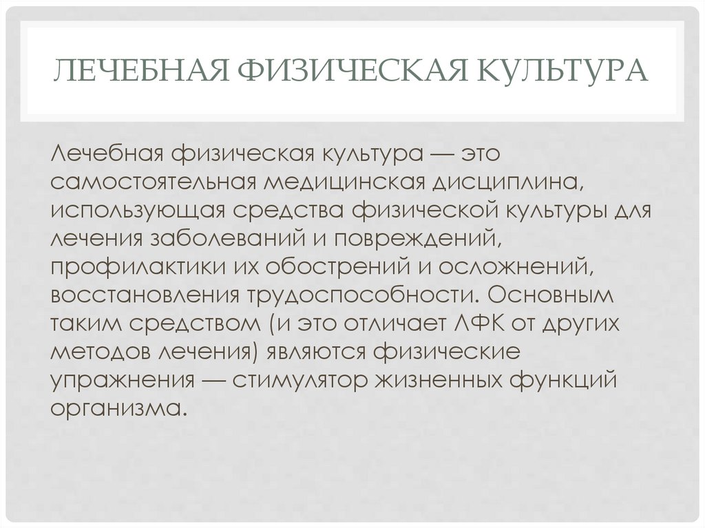 ЛЕЧЕБНАЯ ФИЗИЧЕСКАЯ КУЛЬТУРАЛечебная физическая культура — это