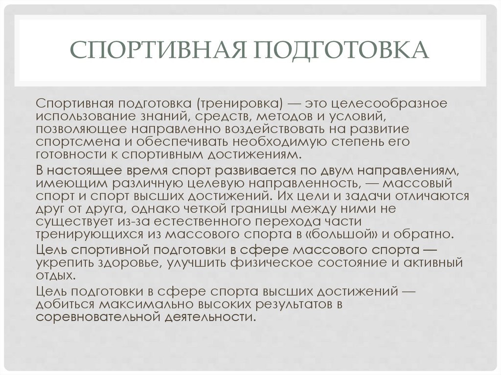 СПОРТИВНАЯ ПОДГОТОВКАСпортивная подготовка (тренировка) — это целесообразное