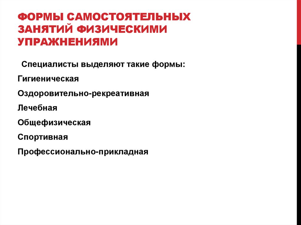 ФОРМЫ САМОСТОЯТЕЛЬНЫХЗАНЯТИЙ ФИЗИЧЕСКИМИ