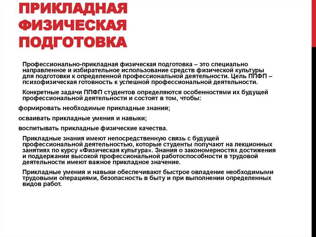 Конкретные задачи ППФП студентов определяются особенностями их будущей