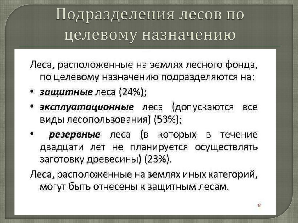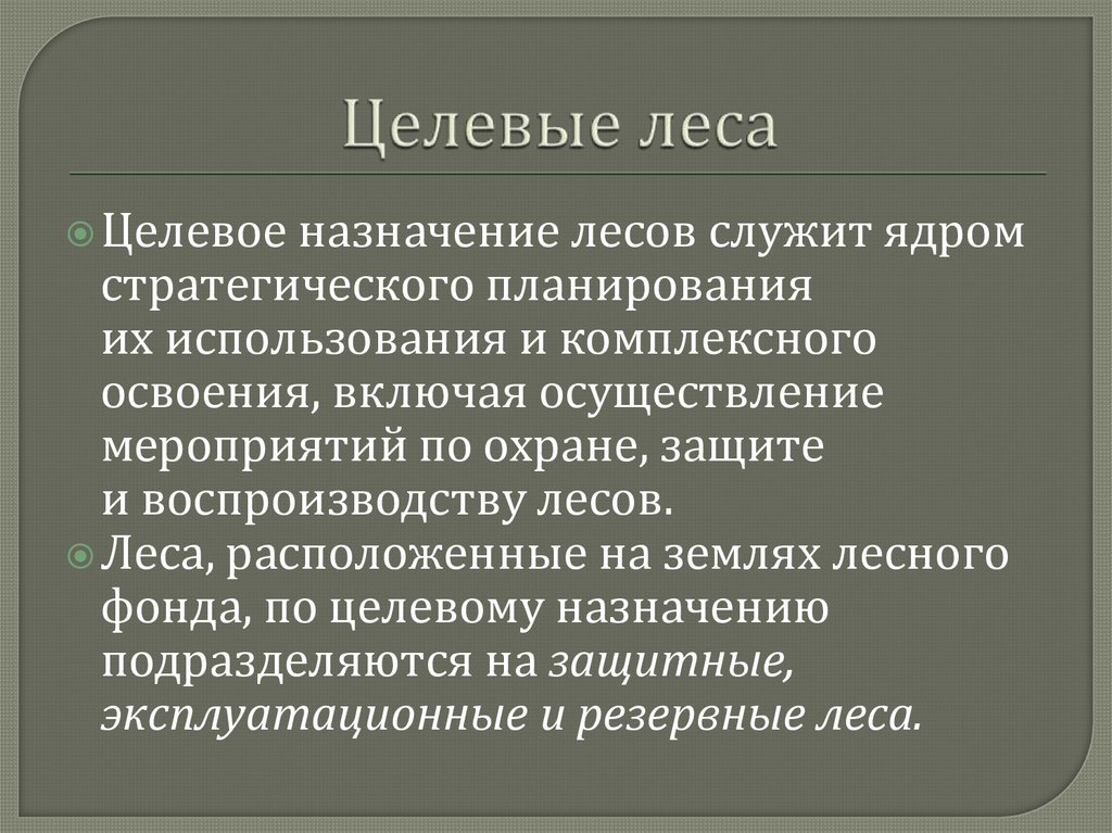 Целевоеназначение лесов служит ядром