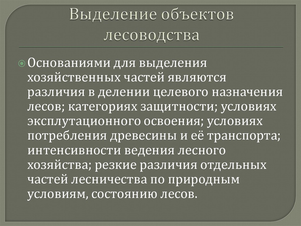 условиям, состоянию лесов.
