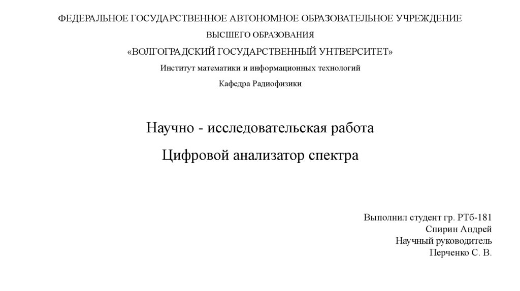 ФЕДЕРАЛЬНОЕ ГОСУДАРСТВЕННОЕ АВТОНОМНОЕ ОБРАЗОВАТЕЛЬНОЕ УЧРЕЖДЕНИЕВЫСШЕГО ОБРАЗОВАНИЯ