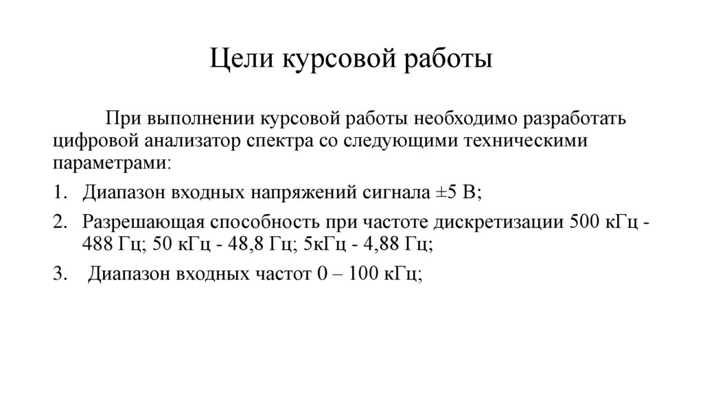 Цели курсовой работыПри выполнении курсовой работы необходимо разработать