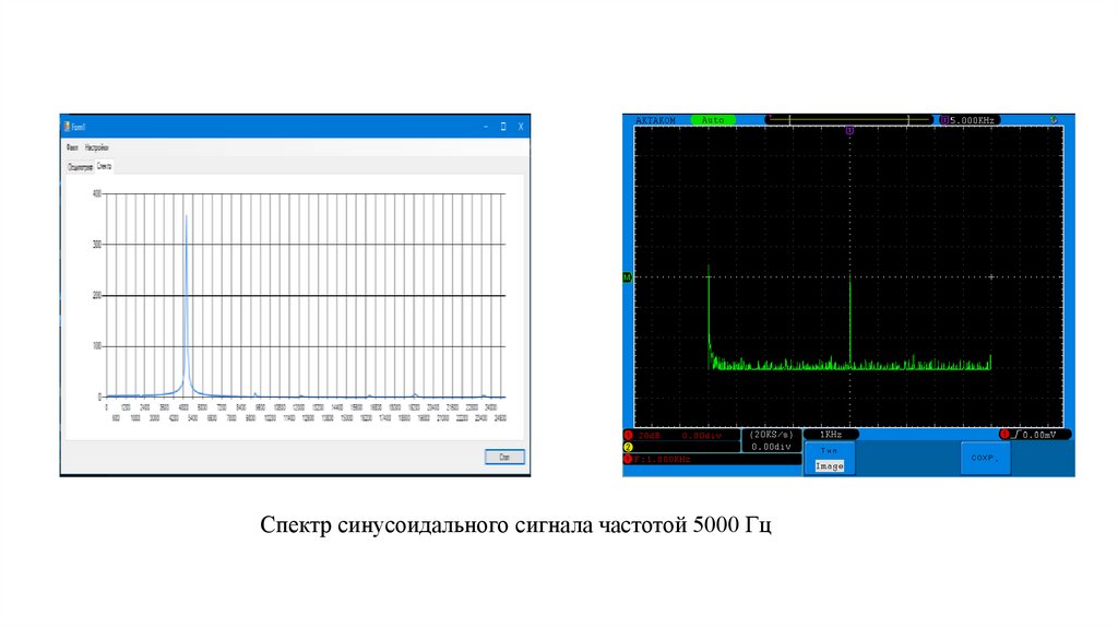 Спектр синусоидального сигнала частотой 5000 Гц7.