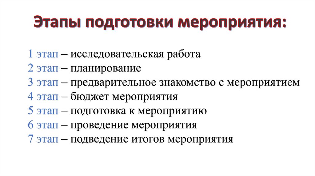 5 этап – подготовка к мероприятию