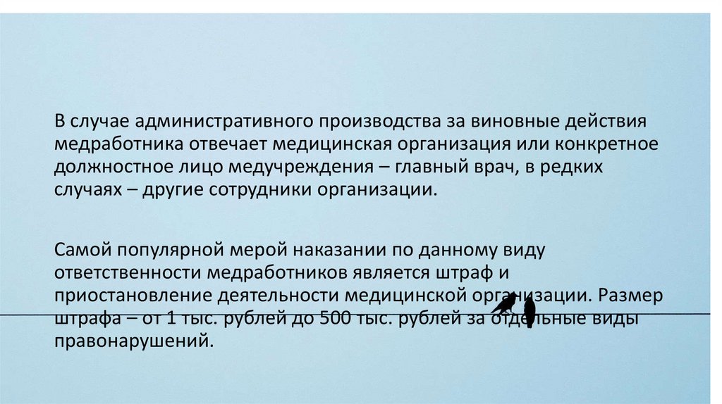 В случае административного производства за виновные действиямедработника отвечает медицинская организация или конкретное