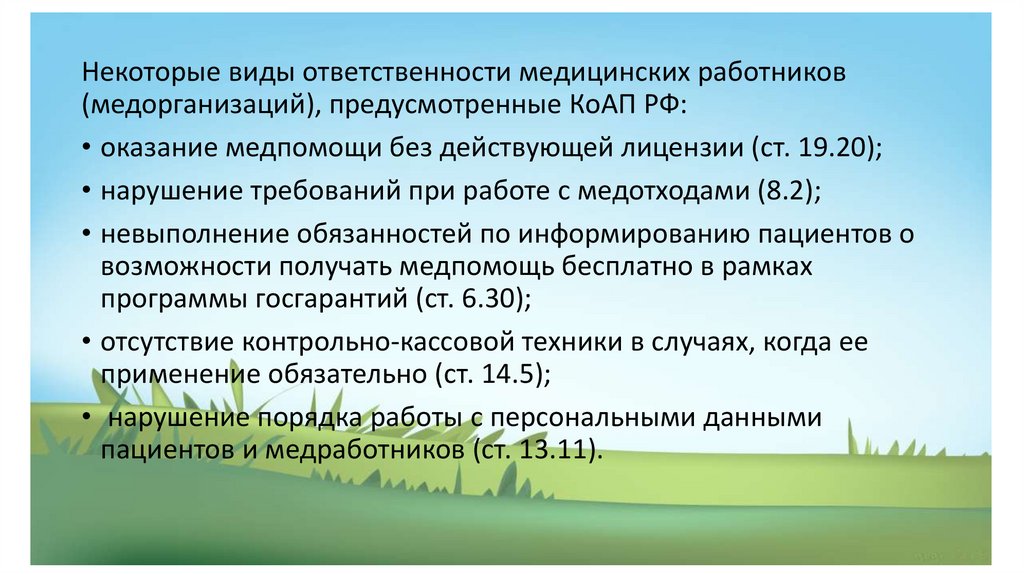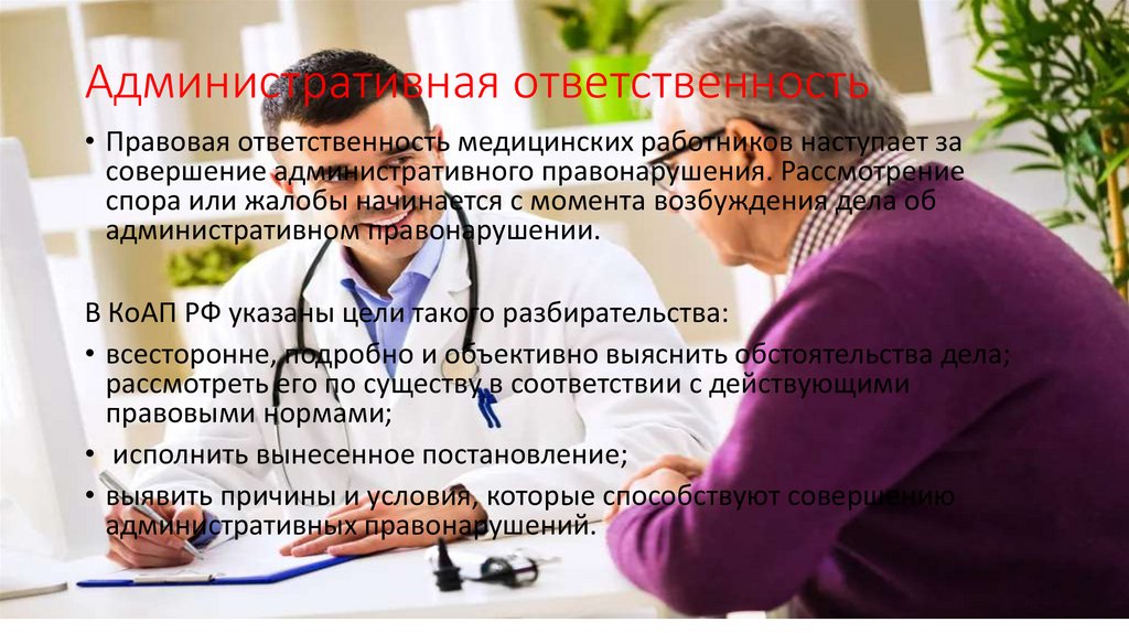 Административная ответственность• Правовая ответственность медицинских работников наступает за