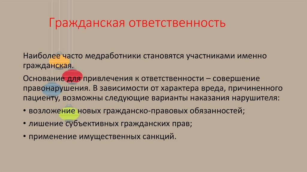Гражданская ответственностьНаиболее часто медработники становятся участниками именно