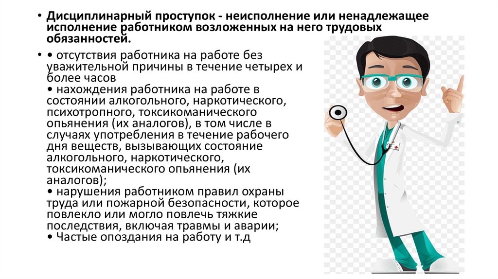• Дисциплинарный проступок - неисполнение или ненадлежащееисполнение работником возложенных на него трудовых