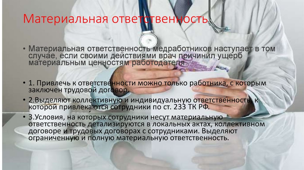 • 8.Материальная ответственность медицинских работников не