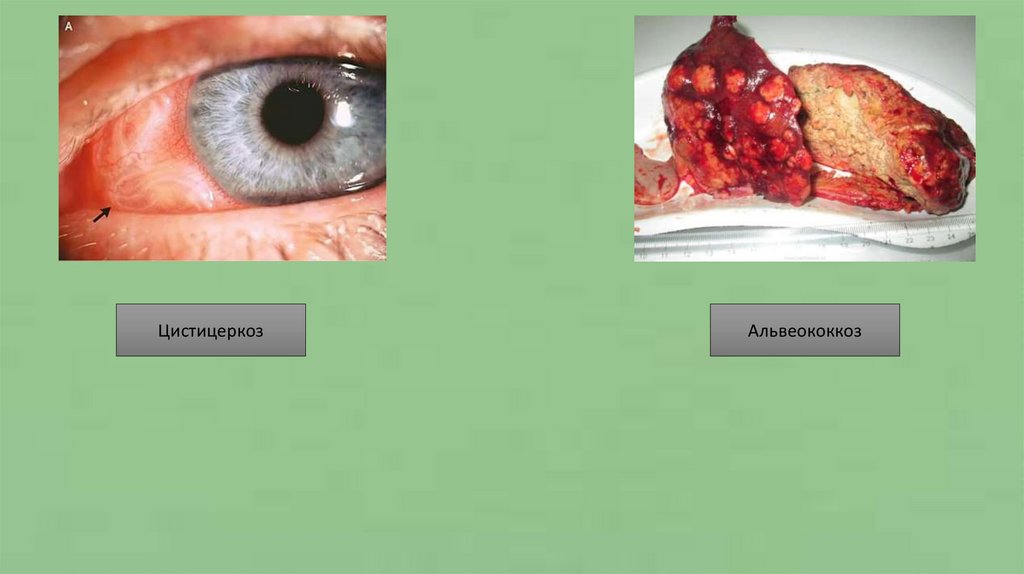• Головной мозг: альвеококкоз, миазы (редко), цистицеркоз,